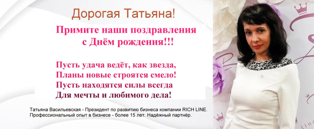 Поздравляем Президента по развитию бизнеса компании RICH LINE Татьяну Васильевскую с Днем рождения!