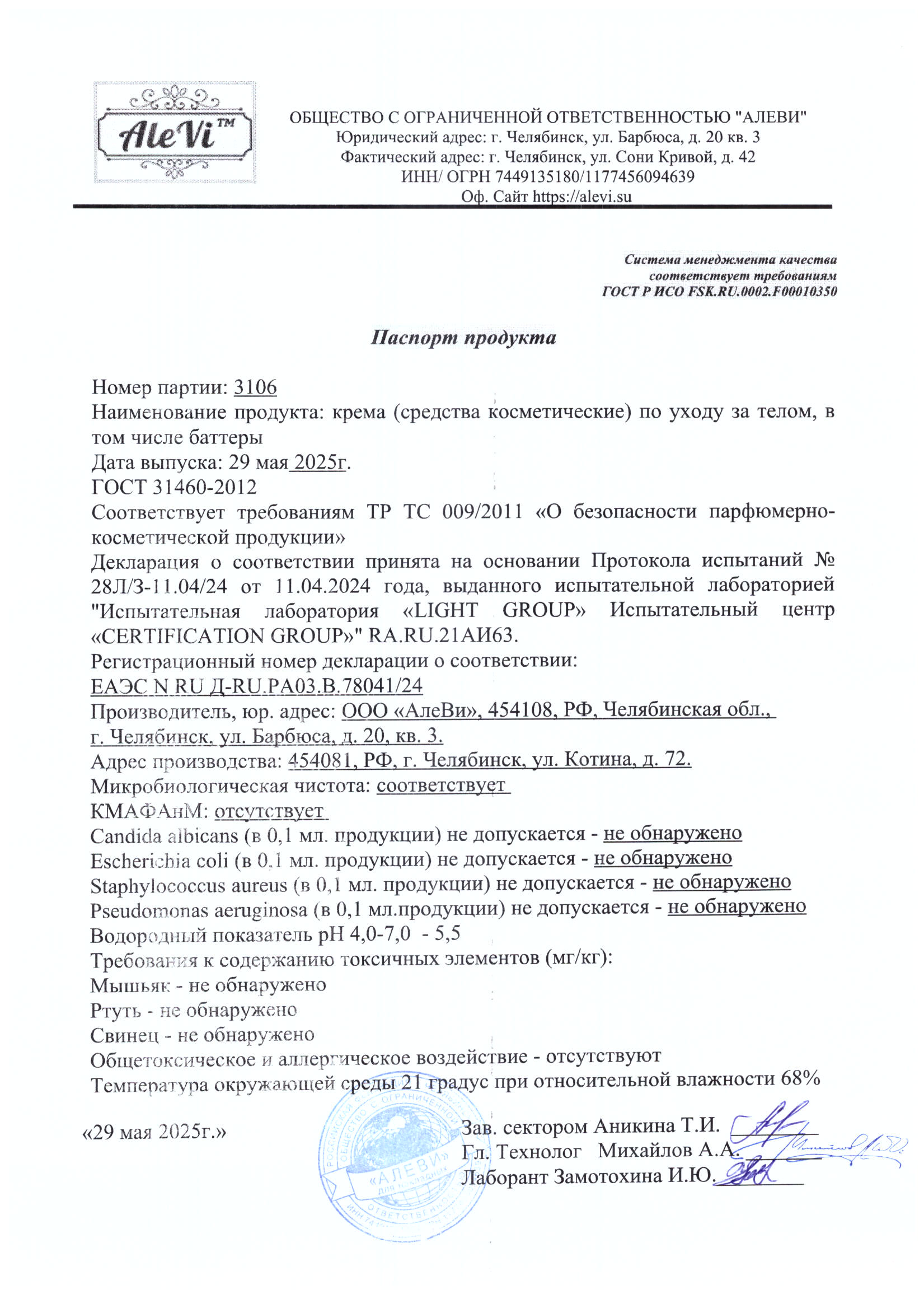 Состав: очищенная вода, октилдодеканол, цетеариловый спирт, глицерил стеарат, масло ши, гидролизат гидрогенизированного крахмала, коко-каприлат/капрат, глицерин, каприлик/каприловый триглицерид, экстракт можжевельника, экстракт донника, масло семян подсолнечника, масло семян морошки, масло листьев розмарина, экстракт шелковицы, токоферола ацетат, ксантановая камедь, натрия стеароил глутамат, бензиловый спирт, дегидроуксусная кислота, натрия бензоат, калия сорбат, лимонная кислота, лимонен, комплекс феромонов, парфюмерная композиция.